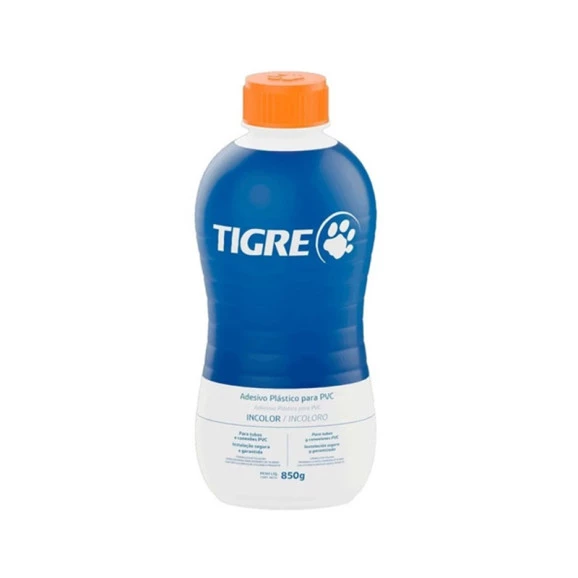 Descrição O Adesivo Plástico para PVC de 850g Incolor da Tigre é recomendado para promover a união entre tubos e conexões de PVC Tigre por meio de soldagem a frio. Aplicação é feita através de processo de soldagem das linhas Soldável Marrom para Água Fria, Registros e válvulas soldáveis, Esgoto Série Normal e Reforçada e linha Irriga LF (linha fixa).