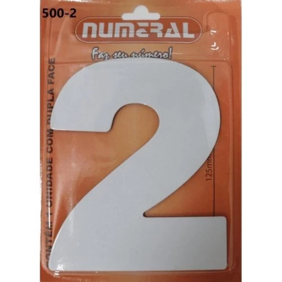 Informações Complementares: Marca: Numeral Referência: 500-2 Modelo: 500-2 Linha: Números Ean: 7896112466437 Material: Alumínio Composto Cor: Branco Medidas do Produto (LxCxA) – cm: 0,05x10,2x12,5 Peso: 0,050kg Garantia: 3 meses -
