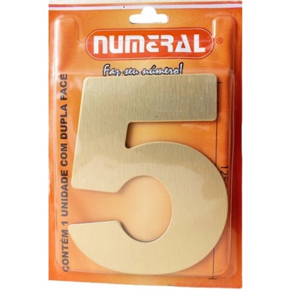 Informações Complementares: Marca: Numeral Referência: 200-5 Modelo: 200-5 Linha: Números Ean: 7896112466666 Material: Alumínio Composto Cor: Dourado Medidas do Produto (LxCxA) – cm: 0,05x10,2x12,5 Peso: 0,050kg Garantia: 3 meses -