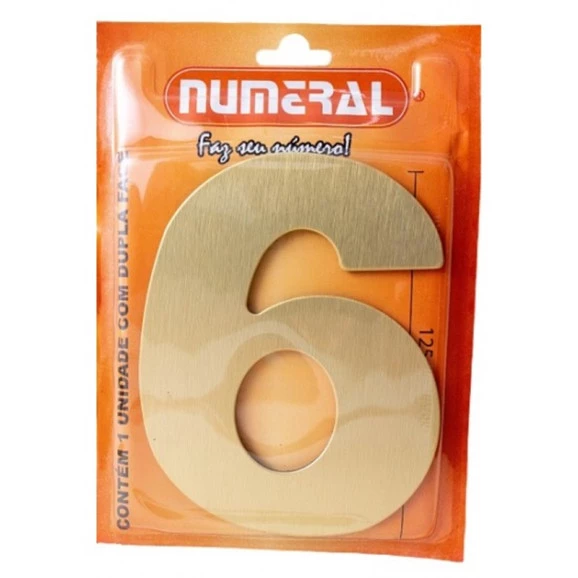 Informações Complementares: Marca: Numeral Referência: 200-6 Modelo: 200-6 Linha: Números Ean: 7896112466673 Material: Alumínio Composto Cor: Dourado Medidas do Produto (LxCxA) – cm: 0,05x10,2x12,5 Peso: 0,050kg Garantia: 3 meses -
