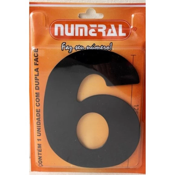 Informações Complementares: Marca: Numeral Referência: 600-6 Modelo: 600-6 Linha: Números Ean: 7896112466376 Material: Alumínio Composto Cor: Preto Medidas do Produto (LxCxA) – cm: 0,05x10,2x12,5 Peso: 0,050kg Garantia: 3 meses -