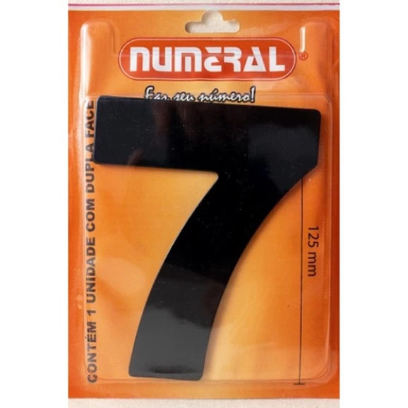 Informações Complementares: Marca: Numeral Referência: 600-7 Modelo: 600-7 Linha: Números Ean: 7896112466383 Material: Alumínio Composto Cor: Preto Medidas do Produto (LxCxA) – cm: 0,05x10,2x12,5 Peso: 0,050kg Garantia: 3 meses -