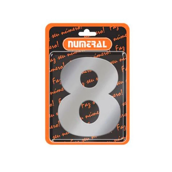 Informações Complementares: Marca: Numeral Referência: 400-8 Modelo: 400-8 Linha: Números Ean: 7896112466598 Material: Alumínio Composto Cor: Prata Medidas do Produto (LxCxA) – cm: 0,05x10,2x12,5 Peso: 0,050kg Garantia: 3 meses -