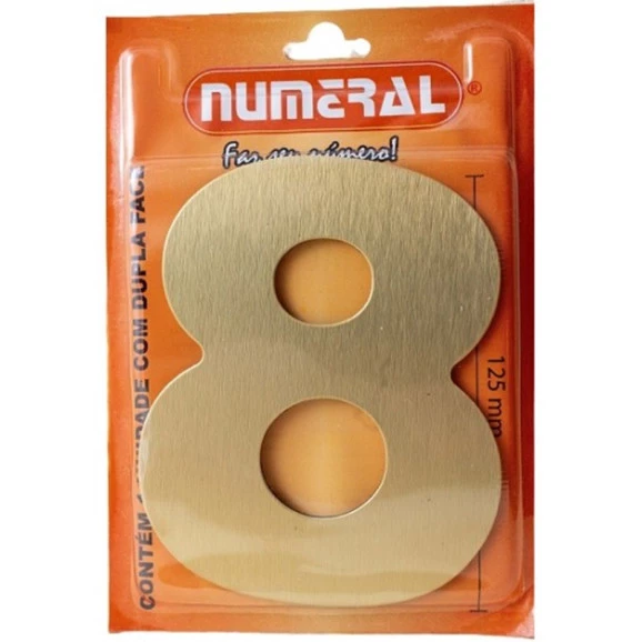 Informações Complementares: Marca: Numeral Referência: 200-8 Modelo: 200-8 Linha: Números Ean: 7896112466697 Material: Alumínio Composto Cor: Dourado Medidas do Produto (LxCxA) – cm: 0,05x10,2x12,5 Peso: 0,050kg Garantia: 3 meses -
