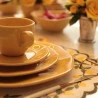 Valorizar o imperfeito, o processo de criação até o seu acabamento. Este é o conceito wabi-sabi, uma visão de mundo japonesa praticada desde o século XV e que tem como base os ideais de uma estética que exalta o irregular, o impermanente e o incompleto. Seguindo essa tendência amplamente utilizada em vários itens de decoração, a Oxford apresenta a coleção Ryo: peças únicas que valorizam o trabalho manual e as composições imperfeitas. O maracujá é uma fruta tropical, caracterizada por seu aroma suave e sabor inigualável. Sua cor foi a inspiração para a coleção Ryo Maracujá, que traz a tranquilidade do fruto e a energia da cor amarela. As peças são decoradas através de um processo manual com pigmentos de tinta, o que garante que cada prato e cada xícara sejam exclusivos e especiais. Produzido em porcelana, o aparelho de jantar Ryo Maracujá conta com prato raso, prato fundo, prato de sobremesa e xícara com pires. O prato raso do modelo Ryo tem o tamanho ideal para servir as principais refeições e seus complementos, enquanto o prato fundo é normalmente utilizado para servir alimentos mais líquidos. As peças podem ser levadas ao micro-ondas e à máquina de lavar louças.