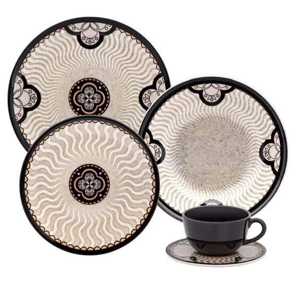 Das terras banhadas pelo enigmático mar mediterrâneo surgem as mais diversas combinações, resultado da pluralidade cultural da região. As texturas, cores e desenhos que decoram a coleção Unni Mediterrâneo foram inspiradas na variedade de sabores e estilos encontrados às margens do mar mediterrâneo. Em tons neutros, a decoração exibe nuances de areia que imitam o movimento das ondas, além da sensação de movimento proporcionada ao tocar em cada peça. Uma experiência multissensorial! O aparelho de jantar Unni Alba de 20 peças é composto por 4 pratos rasos, 4 pratos fundos, 4 pratos de sobremesa, 4 pires e 4 xícaras com capacidade para 200 ml.
