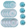 O Aparelho de Jantar e Chá Mandala veio para integrar sua cozinha com requinte e proporcionar que você sirva seus convidados de forma elegante. Feito em cerâmica para gerar maior resistência e durabilidade, o conjunto conta com 20 peças decoradas com elementos inspirados nos desenhos das mandalas proporcionando uma decoração versátil para seu ambiente. Especificações Complementares: Marca: Oxford Referência: 091086 Modelo:AE20-5258 Linha: Mandala Ean: 7891361225132 Cor: Azul Claro Material: Cerâmica Medidas do Produto- cm (LxCxA):19x37x27cm Peso: 7,700kg Garantia: 3 Meses -
