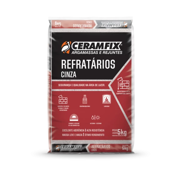 A Refratários Cinza é uma argamassa especial para assentamento e rejuntamento de placas e tijolos refratários em churrasqueiras, fornos e lareiras. Resistente à alta temperatura, oferecendo segurança e qualidade no assentamento de tijolos refratários.
