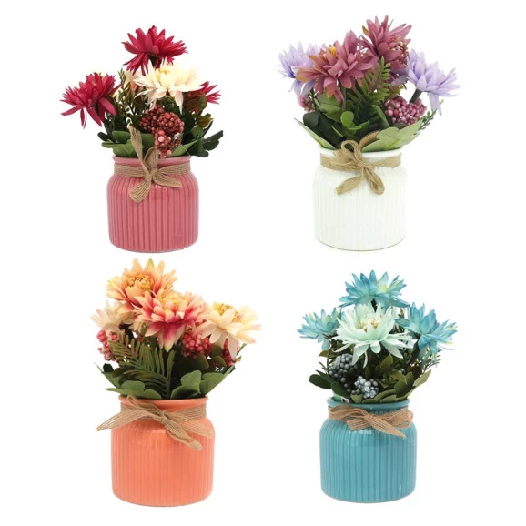 O Arranjo Yangzi com crisântemos em um vaso redondo é a escolha perfeita para quem busca um toque de natureza e elegância. Com suas cores vibrantes e pétalas delicadas, os crisântemos artificiais trazem vida e alegria para qualquer ambiente. O vaso de cerâmica garante um toque sofisticado e atemporal. Ideal para decorar mesas de centro, prateleiras ou qualquer outro espaço que você deseje.