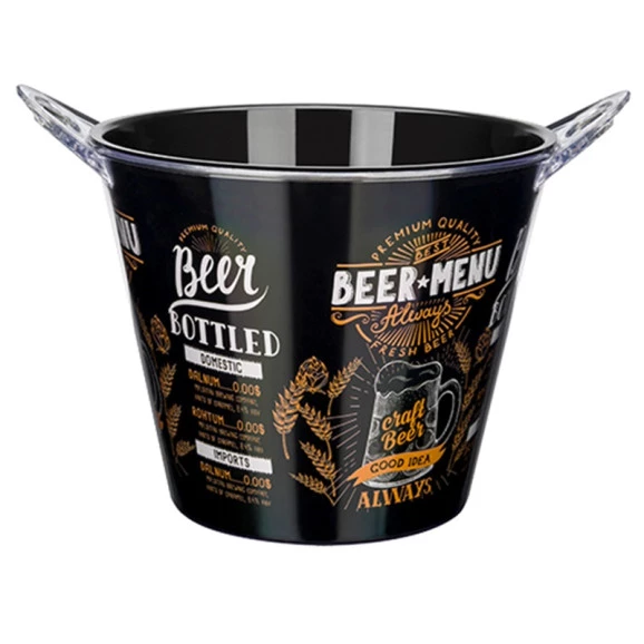 O Balde feito de acrílico é ideal para compor a decoração de seu aniversário com a família e os amigos, servindo as bebidas de uma maneira elegante e estilosa. Além disso, ele possui abridor de garrafa na laterais. Especificações Complementares: Marca: Dynasty Referência: 25530BR Modelo: Bierhaus Linha: Houseware Ean: 7893220251917 Cor: Preto Material: Plástico Medidas do Produto - cm (LxCxA): 24x32x22,5 Capacidade: 5L Garantia: 3 meses