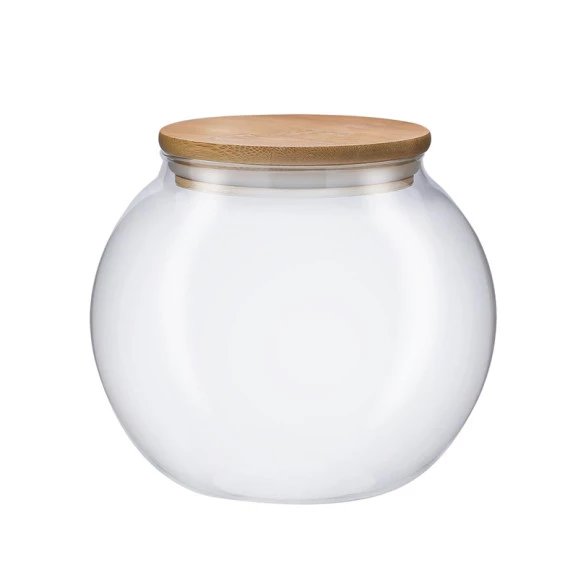 Referência: 20792 – YZP026P Linha: Potes Capacidade: 1400 ml Cor: Transparente Dimensões: 13 cm Material: Vidro Borosilicato e Bambu Ean: 7899655077948 -