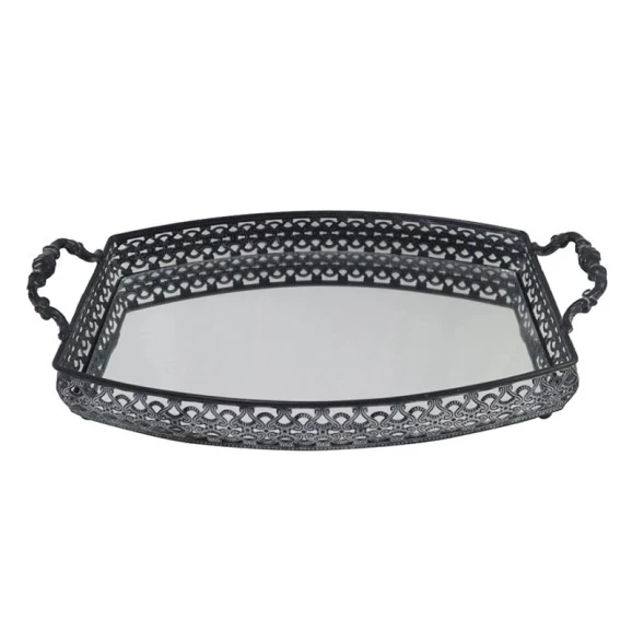 Bandeja retangular fez ferro c/ espelho e alça prata foi feita para adicionar charme e requinte em sua decoração, as bandejas espelhadas são elegantes, charmosas e têm, inclusive, uma pitadinha de luxo em cada curva ou gravura. Mais charme e requinte em sua decoração.