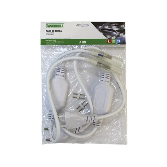 O Cabo de Força Taschibra A39 é o acessório indispensável para a instalação e funcionamento correto de fitas LED. Desenvolvido com o padrão de qualidade da Taschibra, este cabo atua como o conector de alimentação principal, garantindo uma conexão segura e estável entre a fita e a rede elétrica.