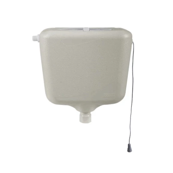 A caixa elevada é um sistema de descarga com volume regulável, de 6,8 a 9 litros. A regulagem interna permite uma descarga controlada por meio do acionamento com cordinha, que pode ser interrompido pelo usuário a qualquer momento, conforme a necessidade de limpeza da louça.