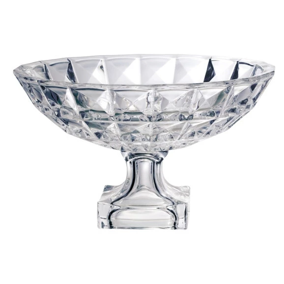 Centro de mesa Aquamarine com pé, possui perfeita transparência e conta com parte superior inteiramente decorada por quadriculados em relevo dispostos lado a lado, detalhes maravilhosos para compor variados ambientes de maneira charmosa e elegante. O pé de sustentação apresenta clássico formato quadrado e completa a peça com muito estilo e sofisticação, além de fornecer maior estabilidade ao produtos. Uma peça indispensável para quem preza por belas decorações e, além de ser um item ornamental, é também ideal para armazenar frutas e outros alimentos ou até mesmo incorporar sua mesa posta.