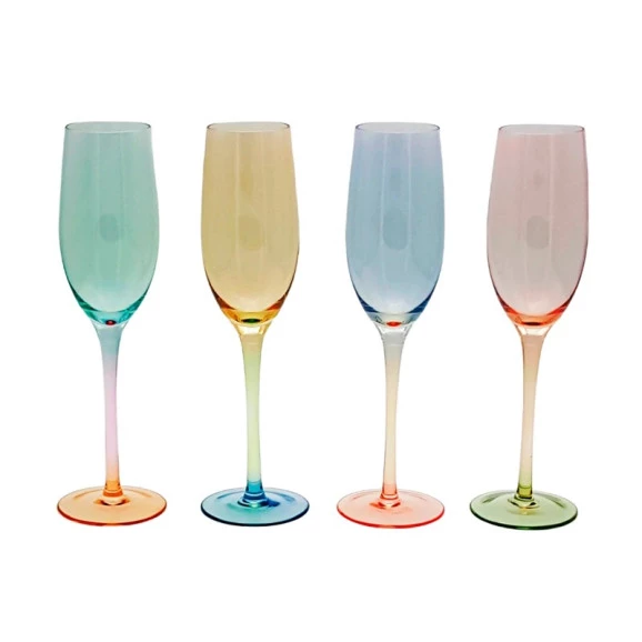 O Jogo de 4 Taças Fracalanza para Champanhe Burano em Vidro, com 200ml e 25cm de altura, traz um toque de cor e elegância à sua celebração. Feitas com vidro de alta qualidade, essas taças são ideais para saborear o seu champanhe favorito com estilo. Com um design colorido e proporções perfeitas, elas elevam a experiência de degustação, tornando cada brinde ainda mais especial. Adicione um toque de sofisticação e alegria à sua mesa com este conjunto da Fracalanza.
