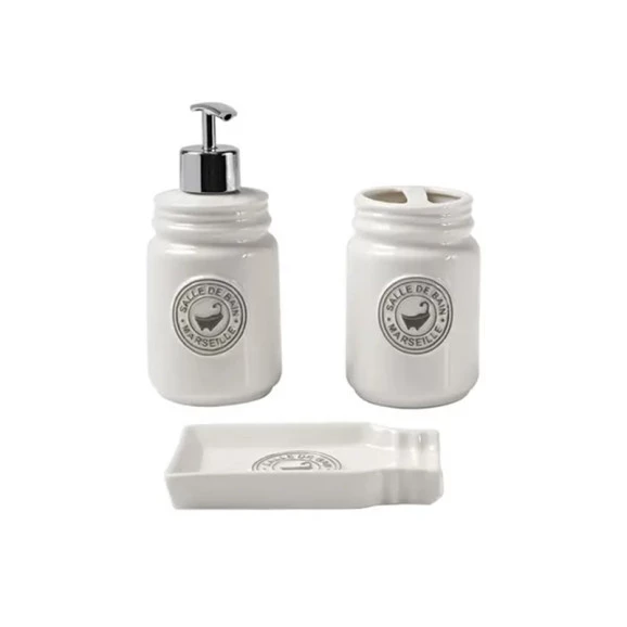 Descrição. A linha Pottery é produzida em porcelana, oferecendo charme charme e delicadeza. Fácil de ambientar, leva praticidade para a rotina de banheiros e lavabos. O conjunto é composto por porta-sabonete líquido, porta-sabonete em barra e porta-escovas de dentes.