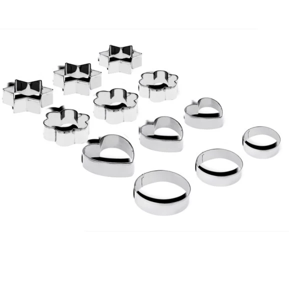 Descrição Produzidos em aço inoxidável, os cortadores de biscoito da linha Glacê são tudo que você precisa para tornar a sua cozinha um ambiente ainda mais delicioso e dividir bons momentos em família, do seu jeito. Com 12 peças, os cortadores possuem formatos diversos para deixar sua imaginação e criatividade ainda mais apurada.