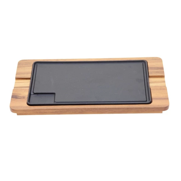 Especificações complementaresMateriais: Chapa retangular em ferro fundido com rebaixamento com base de madeira tropical muiracatiaraAcabamento: Verniz Atóxico -