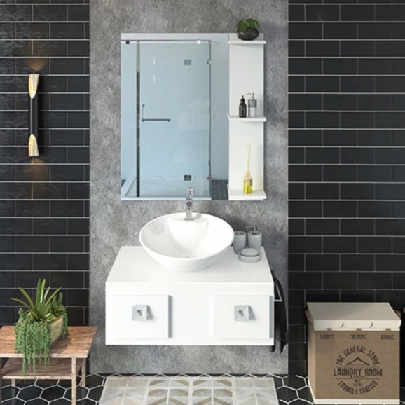 Descrição Com design moderno, elegante e versátil a bancada Essenza é desenvolvido com material de qualidade, e representa um excelente custo-benefício. Além de uma espelheira grande, a bancada dispõe um suporte toalheiro para pendurar toalha de rosto. Possui: