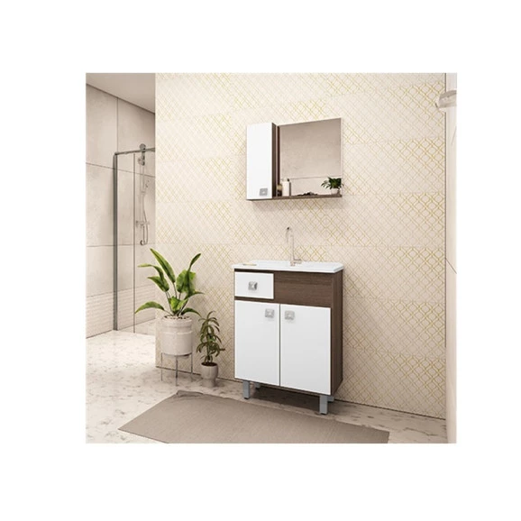 O conjunto Essenza 600 foi desenvolvido especialmente pensando na comodidade de armazenamento e organização do banheiro. É um móvel que confere elegância, modernidade e funcionalidade ao ambiente de banho.Possui:- Comprimento 58,9cm, altura 85,2cm e profundidade 34,5cm;- Corrediças telescópicas, para uma abertura total e mais confortável das gavetas;- Amplo espaço de armazenamento interno;- Pia Duratec (mármore sintético) com formula anti amarelamento;- Fácil instalação;- Alta qualidade de acabamento;- Pés com regulagem de altura, para ajustar o produto conforme a inclinação do piso;OBS.: Imagem meramente ilustrativa.