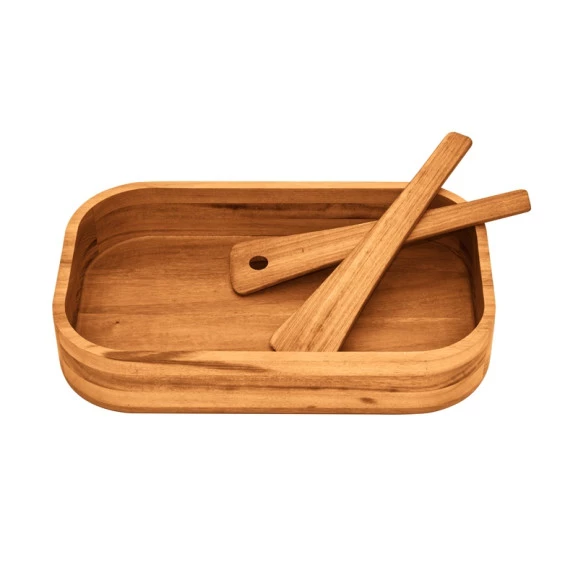 Especificações complementaresAcabamento: Verniz AtóxicoItens que acompanham: 2 utensílios de madeira -