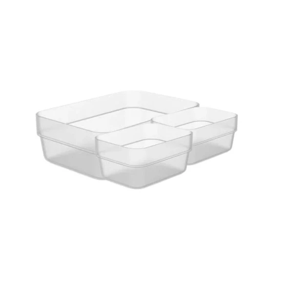 O kit contém os seguintes produtos:- 2 unidade do Organizador De Gavetas Logic Mini 11,5x8,5x5,5 cm- 1 unidade do Organizador De Gavetas Logic P 17X11,5X5,5 cm