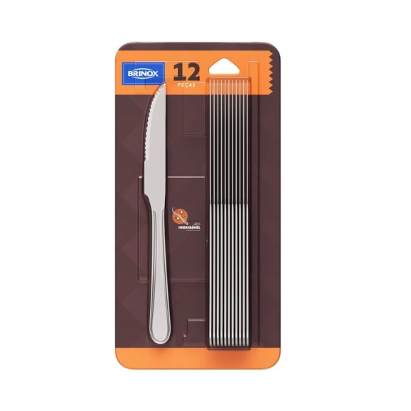 Seu churrasco de domingo fica mais prático e elegante com a faca de churrasco da linha Módena. Além de uma serra desenhada especialmente para cortar carnes, o produto tem um design versátil. Seu cabo arredondado facilita o manuseio, e possui um friso que confere um ar de sofisticação aos talheres. A linha de talheres Módena é feita de aço inoxidável, que garante qualidade e resistência aos produtos. -Talheres com polimento extra brilho -Estilo e Funcionalidade Especificações Complementares: Referência: 5118/428 Linha: Módena Material: Aço Inox Dimensões: 21,6cm Espessura: 2,5mm Composição: 12 Unidades Garantia 3 Meses Para Vícios ou Defeitos de Fabricação