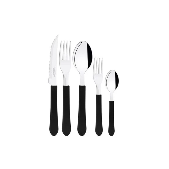 Descrição O Faqueiro Tramontina Leme com Lâminas em Aço Inox e Cabos de Polipropileno Preto 20 Peças é a escolha certa para deixar suas refeições muito mais práticas e cheias de estilo! As peças que compõem o jogo são produzidas com lâminas em aço inox e cabos de polipropileno que contam com resistência e durabilidade para estarem presentes em todos os momentos do seu dia. Sua utilização é muito agradável e você garante um manuseio seguro, pois seus cabos tem formato anatômico e encaixam-se perfeitamente a sua mão. As peças ainda são fáceis de limpar e podem ir à máquina de lavar louças, facilitando seu dia a dia na cozinha! Especificações Complementares Marca: Tramontina Referência: 23198018 Modelo: 23198018 Linha: Leme Ean: 7891112290976 Material: Aço Inox e Polipropileno Cor: Preto Medidas do Produto (LxCxA) – cm: 9,5x9,5x23,5 Peso: 0,455kg Garantia: 3 meses