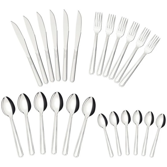 Encante seus amigos e familiares com o faqueiro Tramontina búzios em aço inox com detalhe 24 peças! Produzido totalmente em aço inox, o faqueiro além de ser resistente e durável, deixa a composição da sua mesa ainda mais especial, pois as peças que compõem o jogo possuem um lindo acabamento, garantindo um charme a mais para a refeição.O jogo é composto por 6 facas de churrasco, 6 garfos de mesa, 6 colheres de mesa e 6 colheres de chá. As peças ainda são fáceis de limpar e podem ser lavadas na máquina de lavar louças. A escolha perfeita para saborear as melhores receitas!