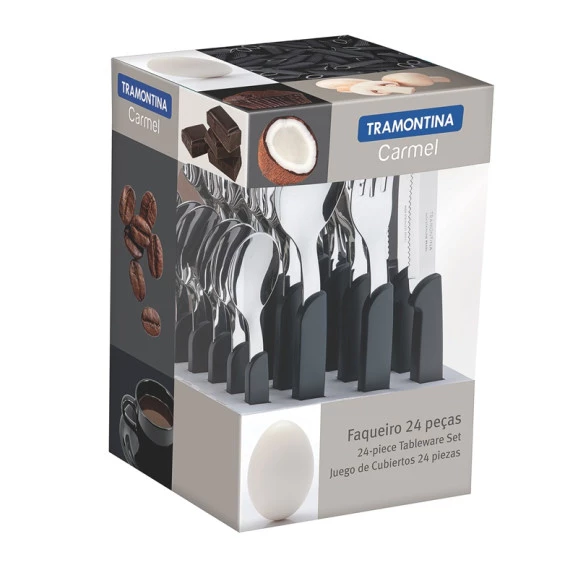 Especificações complementaresConteúdo: 24 peças - 6 Colheres de mesa / 6 Colheres para chá / 6 Facas para carne 4" / 6 Garfos de mesa -