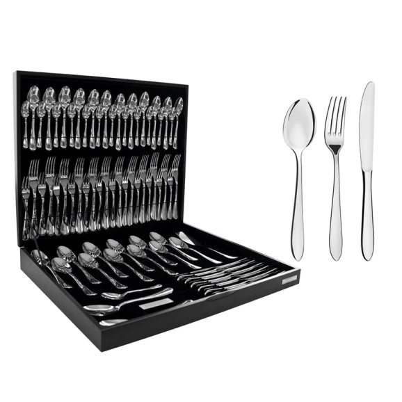 Conteúdo:1 Pá para Açúcar1 Pá para Bolo2 Talheres para Salada12 Colheres de Mesa12 Colherea para Café12 Colheres para Sobremesa12 Facas de Mesa12 Garfos de Mesa12 Garfos para Torta