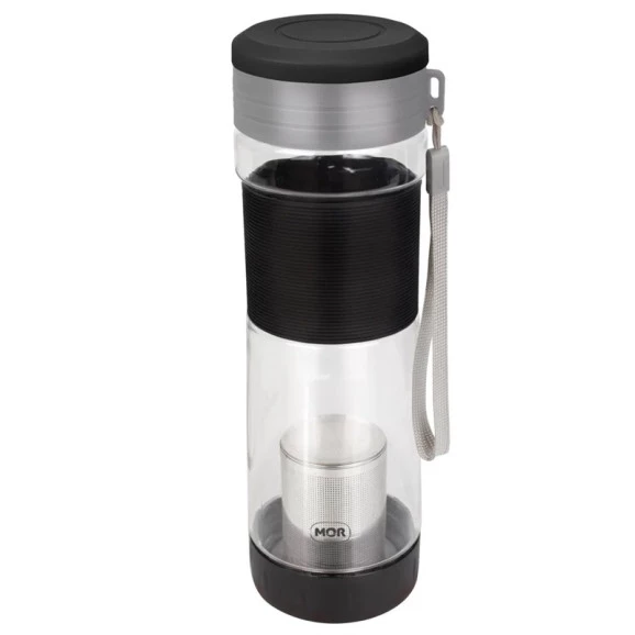 A Garrafa com Infusor está disponível nas cores Bege e Preta. Possui capacidade para encher até 550ml de água. Conta com um compartimento na tampa para separar o seu chá. Protetor de silicone para segurar com mais comodidade, sem queimar as mãos. Infusor na base para manter a infusão até o final. Alça super discreta para poder carregar no pulso. A bebida quente fica conservada por 30 minutos sem a tampa e 45 minutos se estiver com a tampa fechada; e a bebida com gelo permanece intacta em até 45 minutos sem a tampa e 1 hora com a tampa fechada!