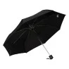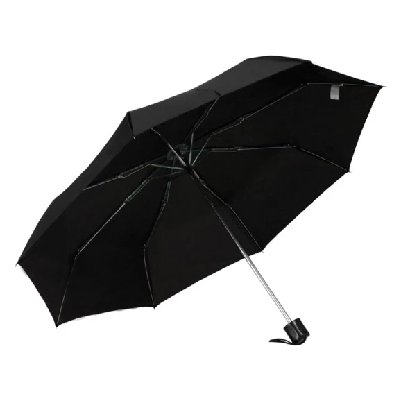Guarda-chuva preto mini, com acionamento manual e cabo reto.