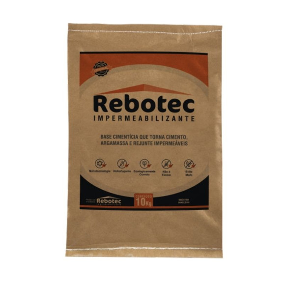 REBOTEC é um aditivo em pó para impermeabilizar concretos e argamassas, que reage com o cimento durante o processo de hidratação, dando origem a substancias minerais que bloqueiam a rede capilar, proporcionando uma elevada impermeabilidade ao concreto ou argamassa.