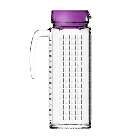 Especificações Complementares: Marca: Nadir Figueiredo Referência: 36936 Modelo: Jarra com Tampa Linha: Ladrilhos Ean: 369374 Cor: Roxa Material: Vidro Medidas do Produto - cm (LxCxA): 9x15x24cm Capacidade: 1,2l Garantia: 3 meses -