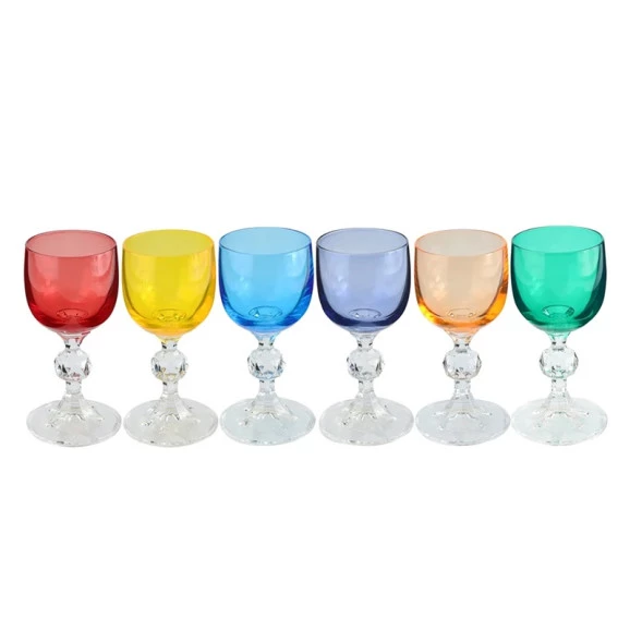 Jogo Bohemia 6 Taças para Licor Claudia: Um toque de sofisticação para sua mesa! Este conjunto de taças, confeccionado em cristal ecológico, combina a tradição da Bohemia com um design moderno e colorido. Perfeito para momentos especiais e para quem aprecia a beleza dos detalhes.