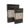 Caixa livro decorativa mapa mundi. Decora seu ambiente com charme e funcionalidade, pode ser usado na sala, escritório, quarto ou onde preferir. O jogo possui 2 peças, uma grande 27x19x6,5 cm, e uma pequena 21x13x3 cm. Especificações Complementares: Referência: 24010 Marca: L Hermitage Linha: Biblioteca Distribuidor: Full Fit Cor: Preto Material: MDF e Material Sintético Dimensões G: 27x19x6,5 cm Dimensões P: 21x13x3 cm Quantidade de peças: 2 Garantia do fabricante: 3 meses