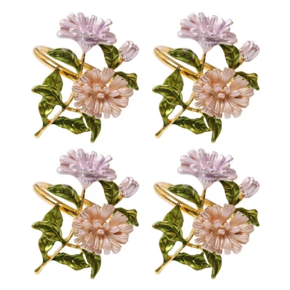 Jogo De 4 Anéis Flor Para Guardanapo Cor Rose 26780