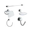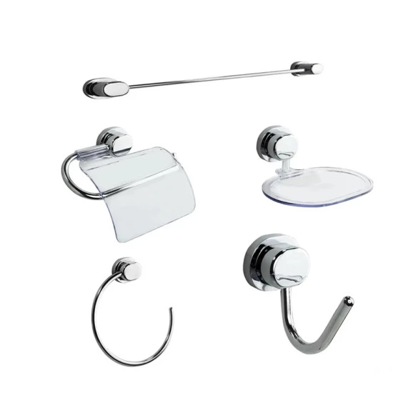 Descrição O Kit de Acessório para Banheiro Alamo com 5 Peças Cristal da Expambox é um produto completo, conta com uma papeleira, uma saboneteira, uma argola, uma porta toalha, e um cabide. Conteúdo da caixa: 1 porta-papel higiênico 1 toalheiro circular 1 toalheiro reto 1 saboneteira 1 cabide Especificações Complementares: Marca: Expambox Referência: 337500 Modelo: 337500 Linha: Alamo Ean: 7896955874253 Cor: Cromado Material: Cromado Medidas do Produto- cm (LxCxA): 6,5x47x19Cm Peso: 0,458Kg Garantia: 3 meses