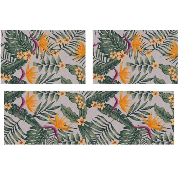Manutenção: - Antes da lavagem, utilize aspirador de pó para remover a sujeira - Para lavar, utilize sabão neutro, sem alvejantes. - Se necessário, uso de escova e retirar o sabão com água fria. - Secagem somente à sombra. Uso: O kit de 3 peças Slim Kasa - Kapazi é ideal para sua cozinha, para uso na frente da geladeira, uso do tapete na frente do fogão e demais ambientes.