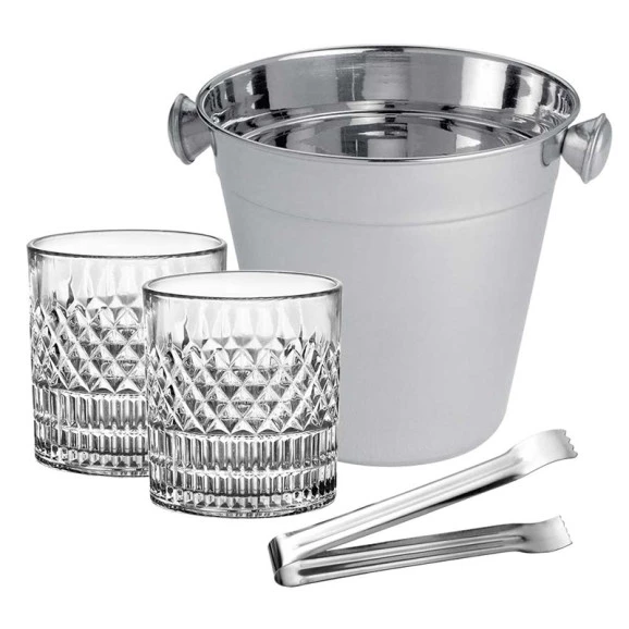 Kit Whisky 4 Peças L'hermitage Sirva e saboreie um bom whisky neste lindo Kit Bar! Peças produzidos em cristal com mais firmeza, qualidade e ótima resistência. O design compacto do balde de gelo, produzido em Aço Inox, acompanha um pegador para facilitar a degustação da bebida, os copos são lapidados. Peças que possuem design charmoso, acabamento perfeito e que trazem sofisticação para o seu ambiente.