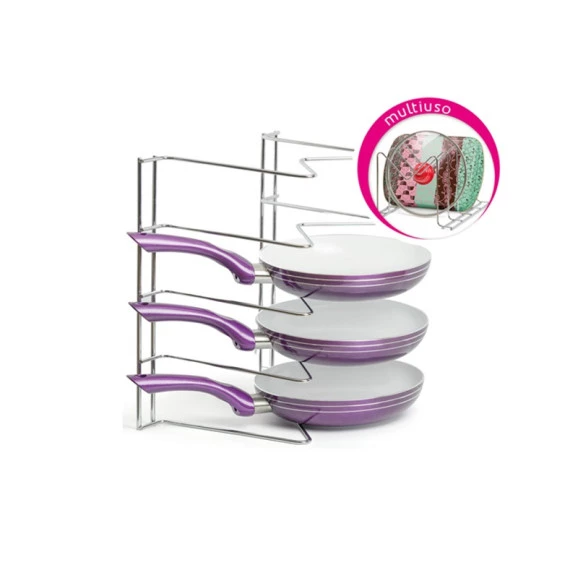 Acabe com a bagunça nos seus armários com o Organizador de Formas, Travessas e Frigideiras Passerini Cromado. Este item funcional e robusto é a solução perfeita para manter suas assadeiras, travessas e frigideiras organizadas de forma vertical, otimizando o espaço e facilitando o acesso. Fabricado em metal cromado, o organizador é resistente, durável e adiciona um toque de modernidade à sua cozinha. Seu design permite acomodar peças de diferentes tamanhos, evitando que fiquem empilhadas umas sobre as outras, o que previne arranhões e danos.