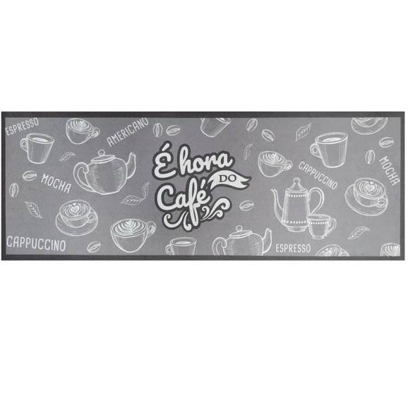 Confeccionada em PVC a passadeira de cozinha uzoo estampado cafe cinza 40x110 agrega qualidade e design exclusivo para sua cozinha.