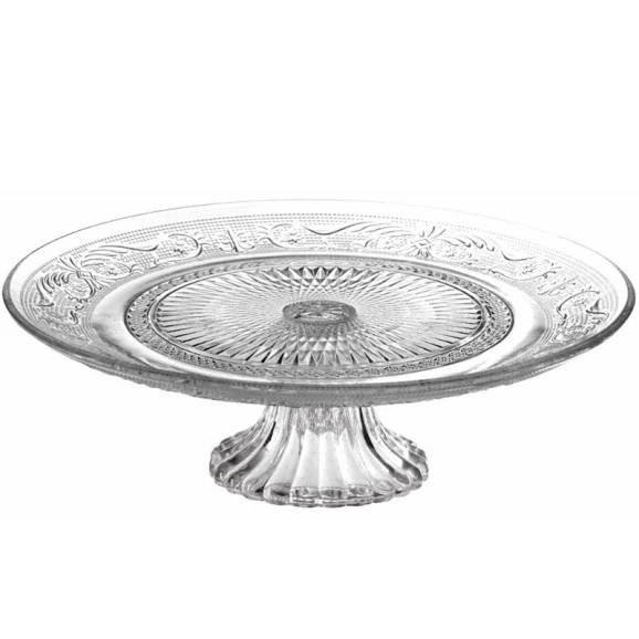 O prato para bolo Lhermitage com pé assegura que seu bolo ou sobremesa farão enorme sucesso entre seus convidados. O prato e pé possuem um relevo com desenhos especiais, perfeito para decorar mesas de doces em festas e reuniões. Especificações complementares Conteúdo: 1 peça Distribuidor: Full Fit Modelo: La Mansília Linha: Mesa Posta Referência: 23341 Cor: Transparente Material: Cristal Ecológico Dimensões do produto: 32,5x32,5x10 cm