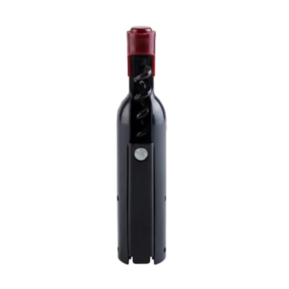 Saca-rolhas Dynasty em formato de garrafa produzido em plástico e aço inox, é um item útil e ao mesmo tempo com aparência divertida.