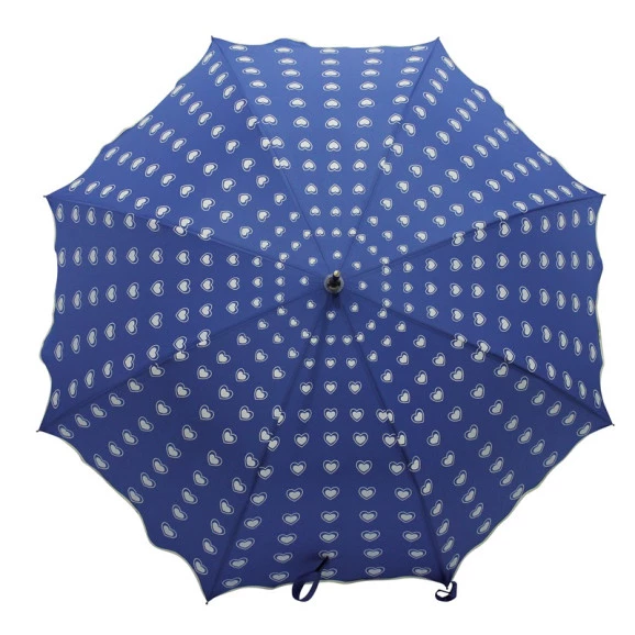 Sombrinha de corações, colorida, com abertura automática e cabo curvo. Cores diversas.
