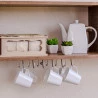 Descrição Fabricado em aço cromado, o Suporte de Xícara Aramado é prático, resistente e conta com um design moderno. Ideal para a organização e otimização de espaços.