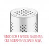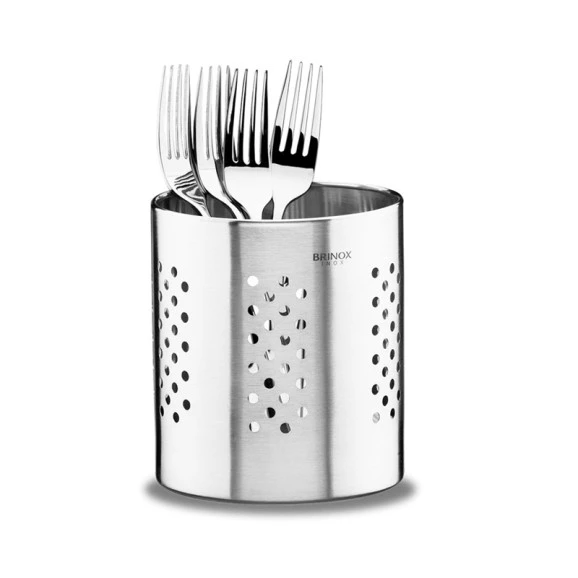 Alguns utensílios, além de facilitar a sua vida, deixam a sua casa muito mais bonita. Este é o caso do suporte para talheres da linha Parma. Inquebrável, o recipiente é prático, fácil de limpar e cheio de estilo. Os orifícios nas laterais, além de permitir que os talheres sequem mais rápido, também dão um charme à peça que pode ir da cozinha à mesa. O fundo do suporte ainda possui apoios salientes que o deixam levemente elevado em relação à superfície de apoio e permitem que a água escoe rapidamente. A peça tem ø 12cmx14cm de dimensão. Especificações Complementares: Referência: 1606/000 Material: Aço Inox Linha: Utilidades Jornata Composição: 1 Suporte para Talheres Tamanho: 12x12x14cm