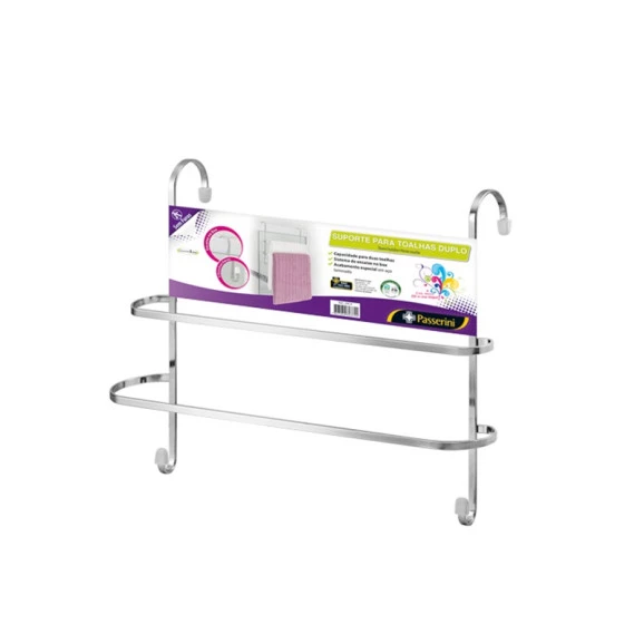 Otimize o espaço do seu banheiro ou cozinha com o Suporte para 2 Toalhas Passerini Laminado Cromado. Este item prático e elegante é a solução perfeita para organizar toalhas de rosto, panos de prato ou de mão, sem a necessidade de furar paredes. Com um sistema de encaixe inteligente, ele é fixado na porta de armários ou gabinetes, garantindo uma instalação rápida e sem danos. O acabamento em cromado não só adiciona um toque de modernidade e brilho, como também assegura durabilidade e resistência à umidade, tornando-o um acessório funcional e sofisticado para o seu ambiente.
